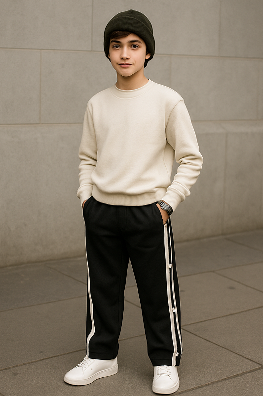 شلوار بگ دو نوار دکمه سفیدناموجود
