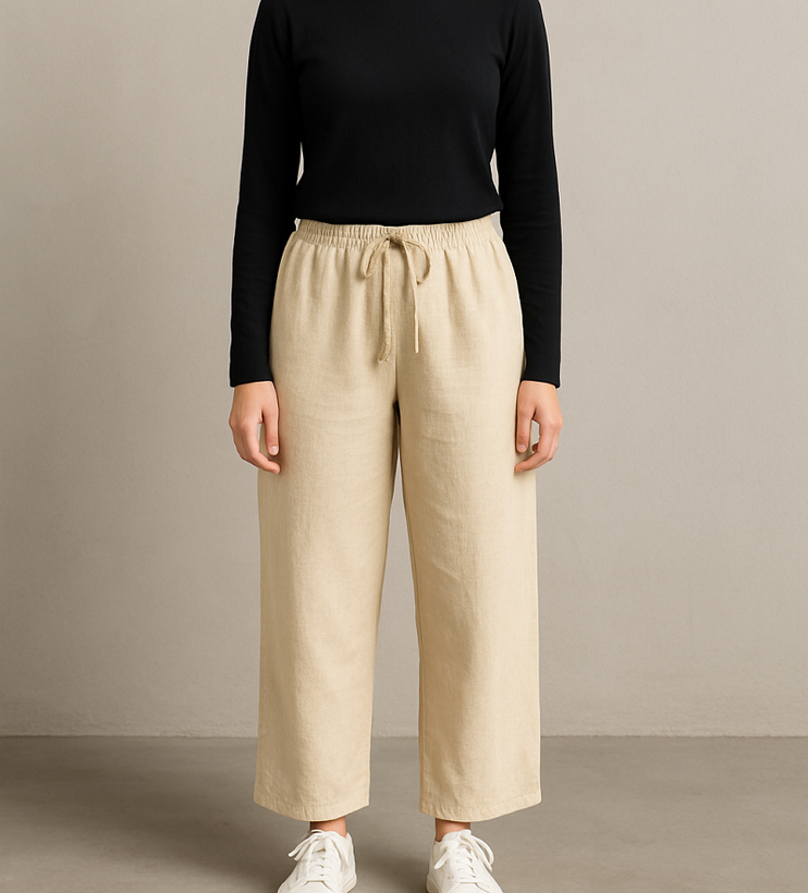 - ظاهر شیک و طبیعی: بافت خاص لینن ظاهری ساده اما جذاب به شلوار میدهد که با انواع لباسها هماهنگ میشود.