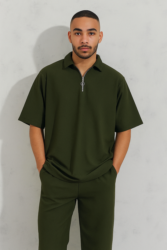 ست تیشرت نیم زیپ و شلوار بیسکویتی